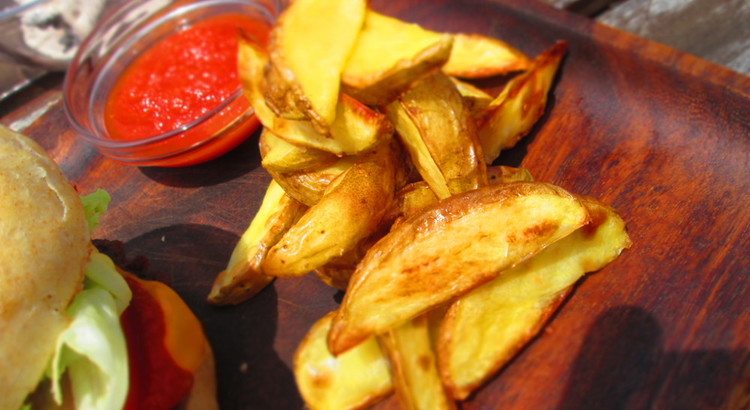 バーガーのサイドディッシュには外せないポテト。今回は油でフライせずにオーブンでサクッと仕上げて少しだけヘルシー仕様にします。ここにも手作りケチャップをつけていただきましょう。